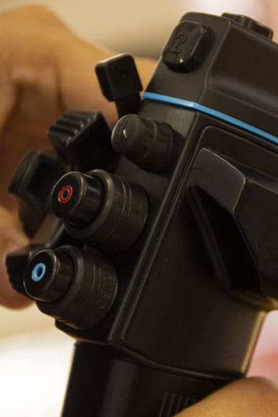 最近開発されたレーザ光源を使った内視鏡では5.8mmの内視鏡を使った検査が可能になりました。